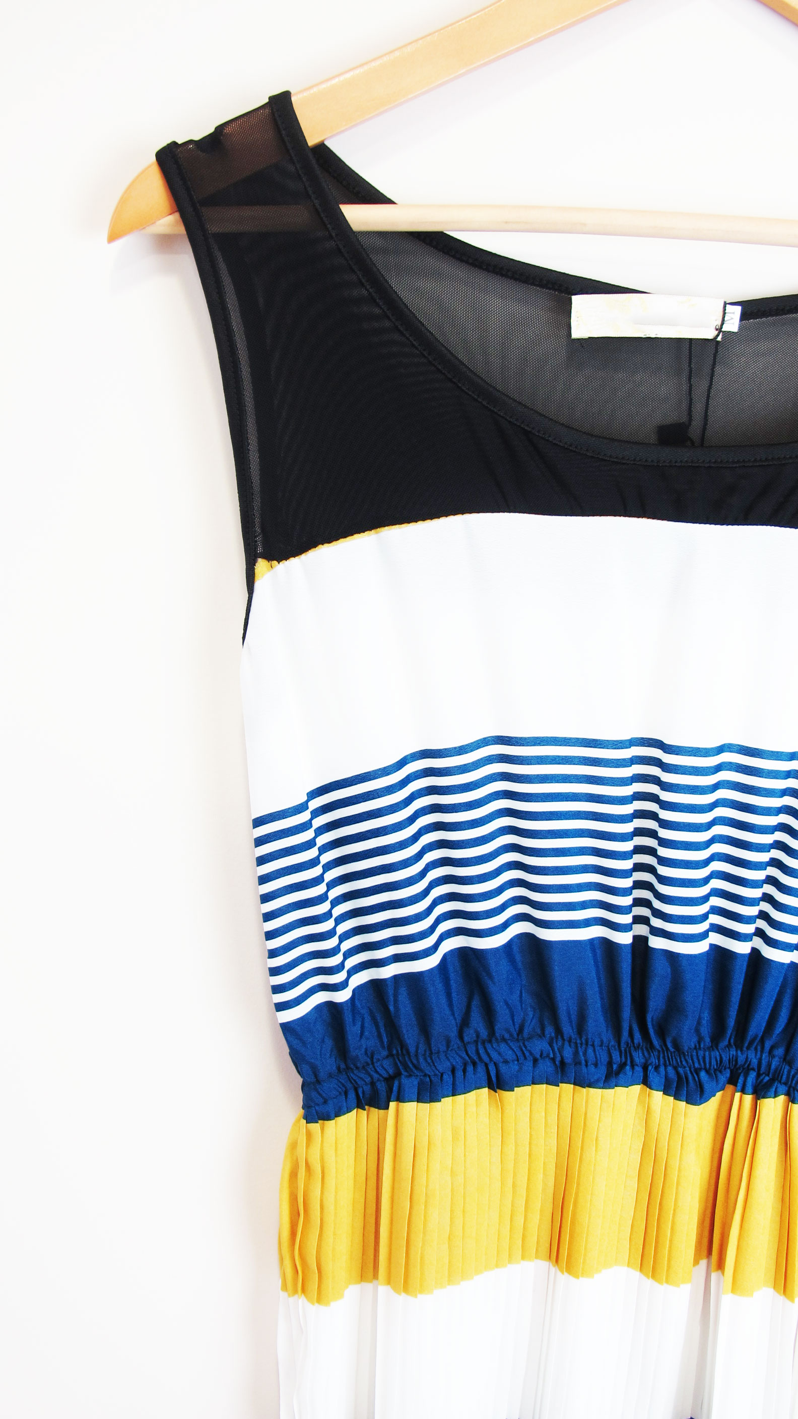 Feel like dressing up to impress. Never go wrong with Color block pleating