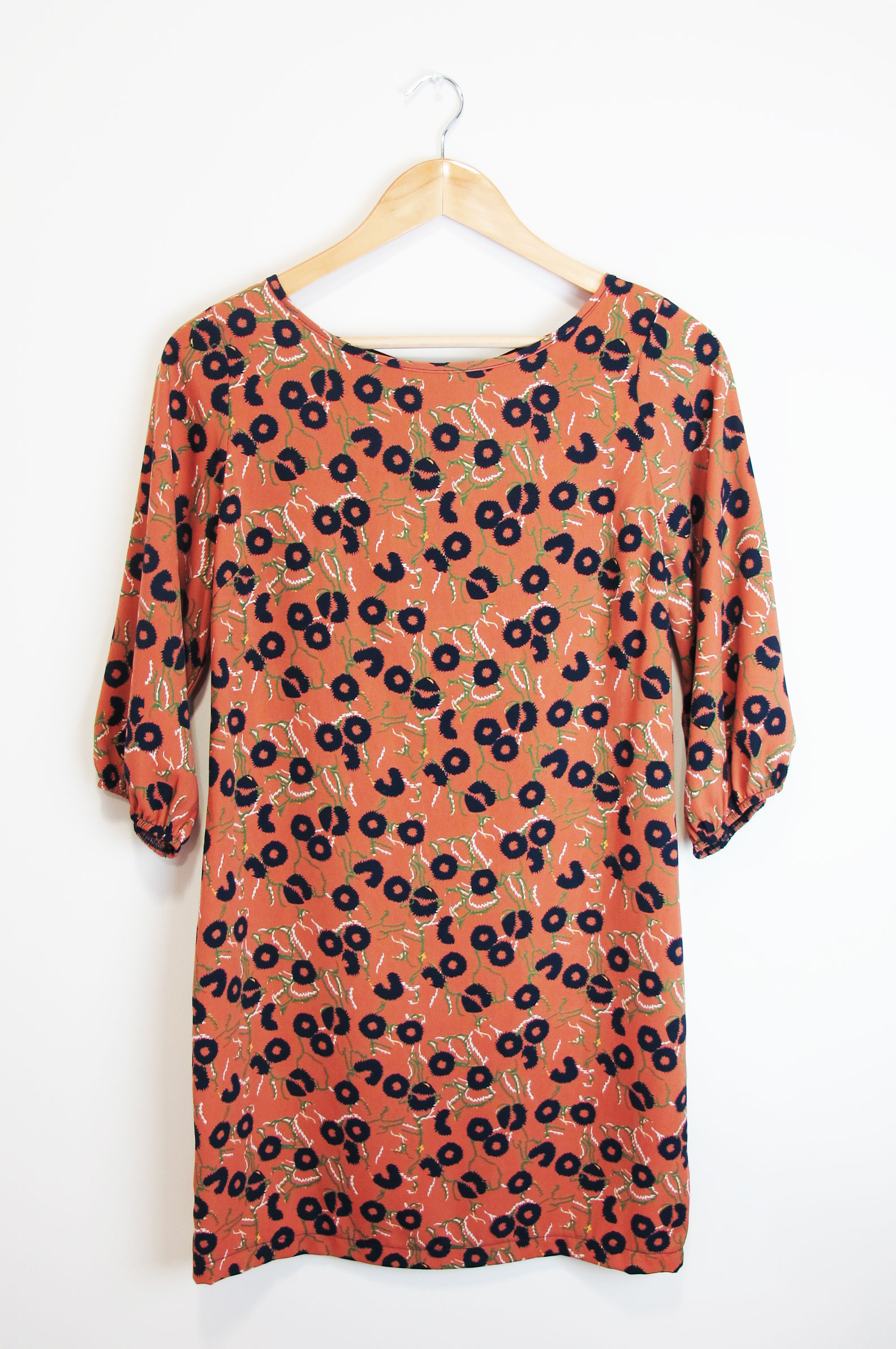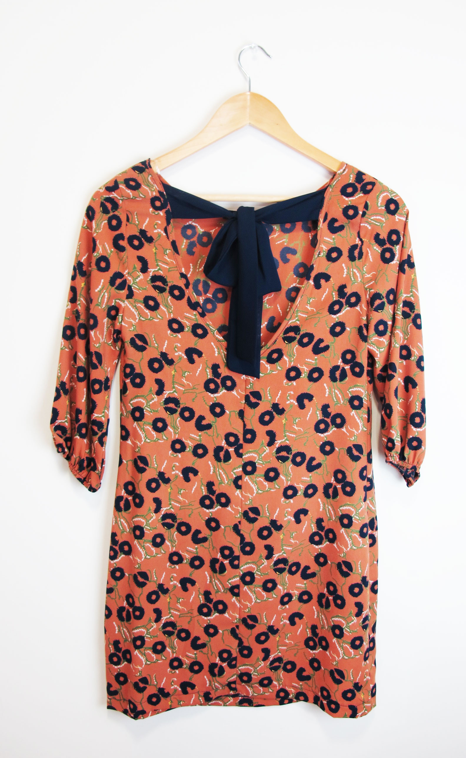 A rear bow tie print Washingtonian dress to stroll in the alley of